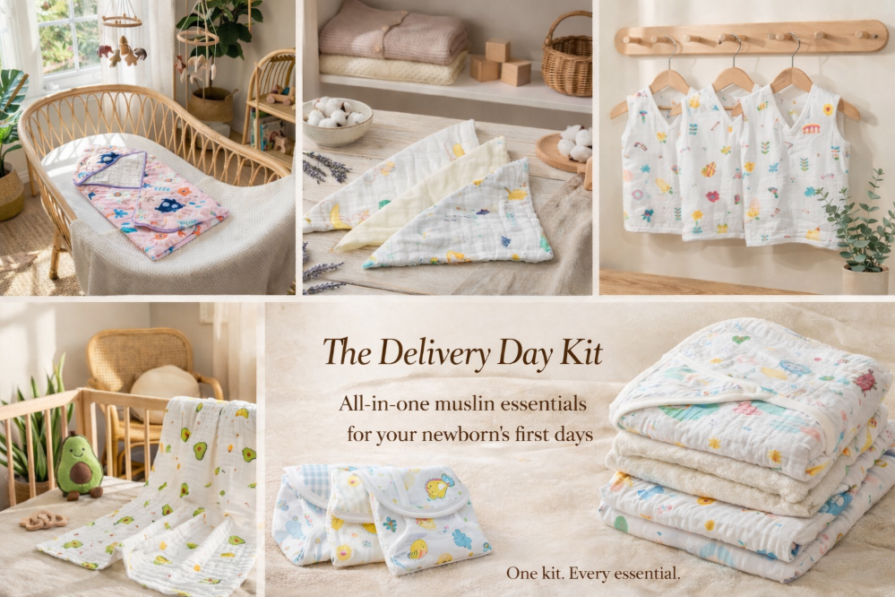 Crafted entirely from baby-friendly muslin fabric, designed for Indian weather.